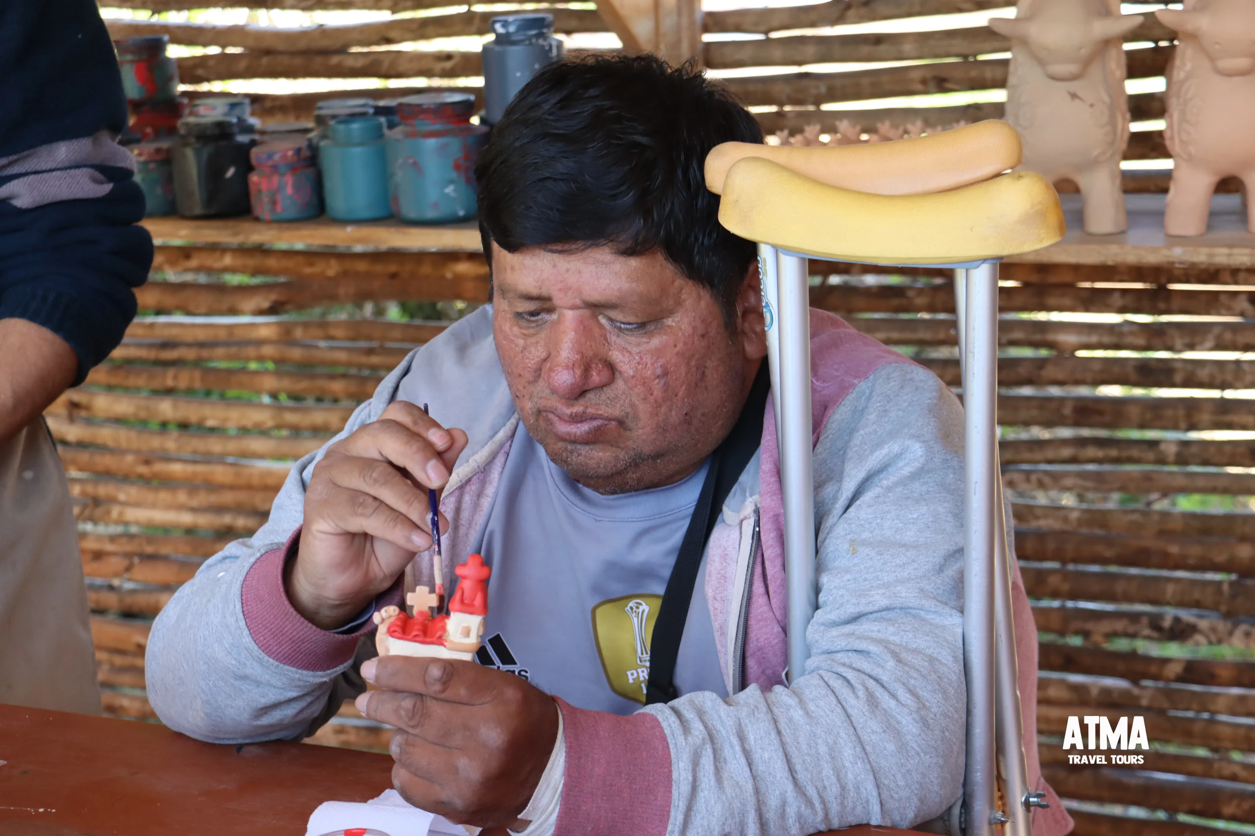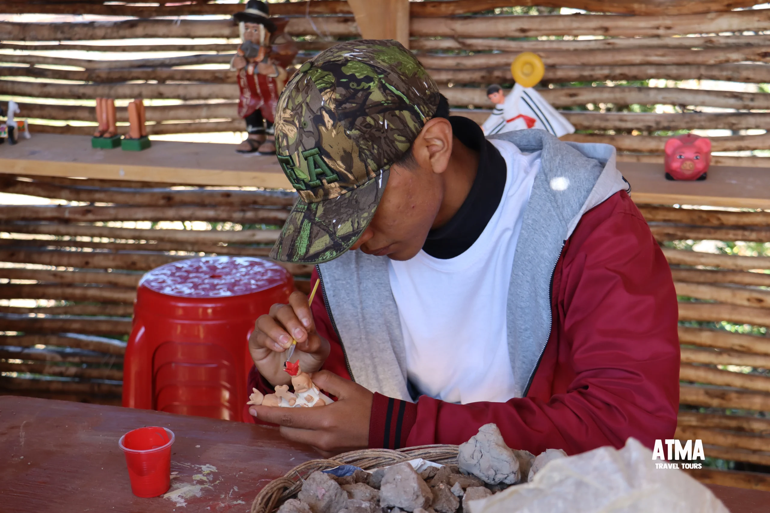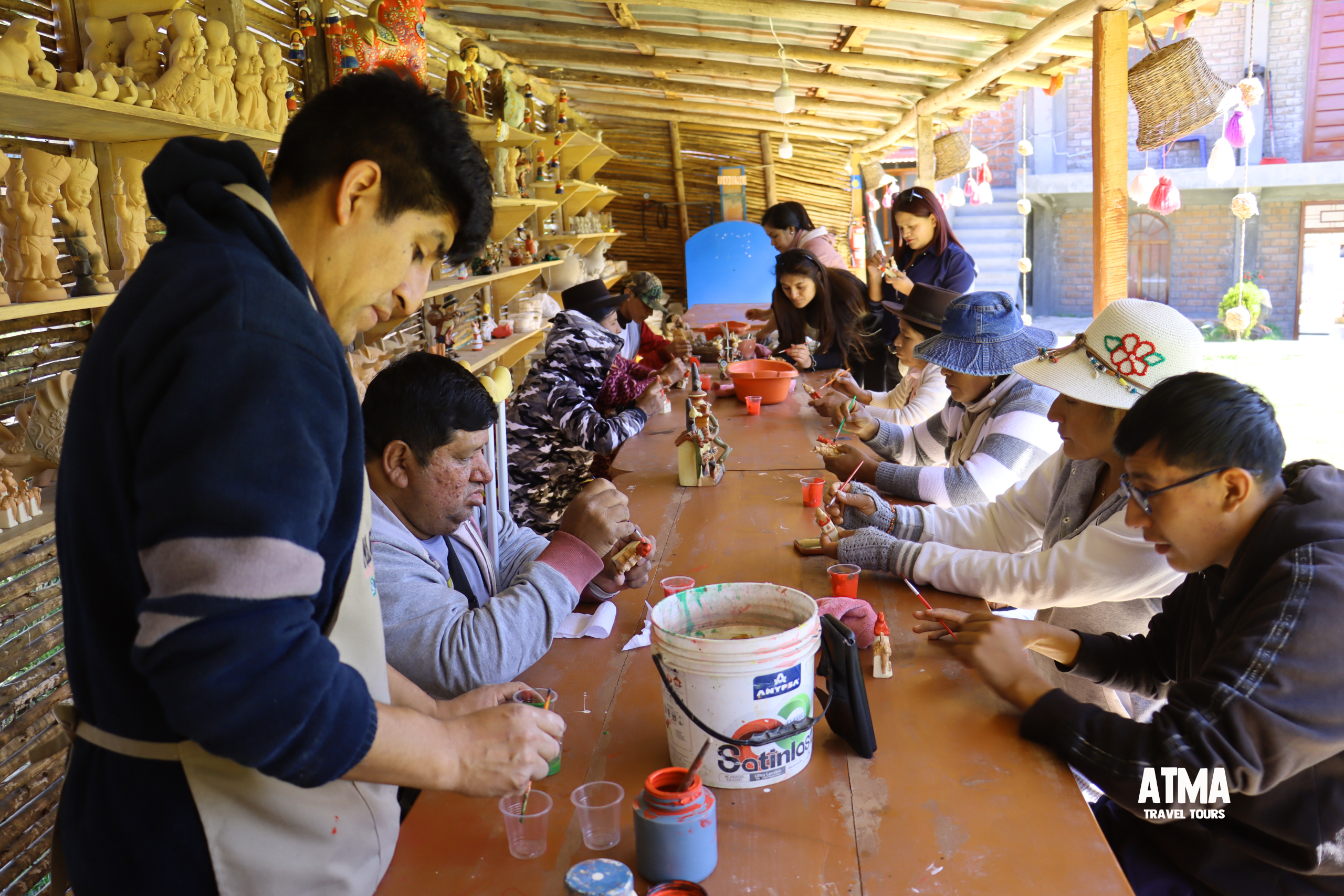 Después, nos dirigimos al Taller El Arco, de la familia Nolasco, en Quinua. Allí, se encendió una chispa diferente: la creatividad. Cada participante eligió una pieza de cerámica para pintar. Con pinceles en mano y ojos brillantes, demostraron que el talento no tiene límites. Con cada trazo, dejaban salir su esencia, su color interior. Fue asombroso ver cómo convertían el barro cocido en arte, en emoción, en mensaje. Esa pieza que pintaron con tanto amor se la llevaron consigo, como símbolo de un día inolvidable.